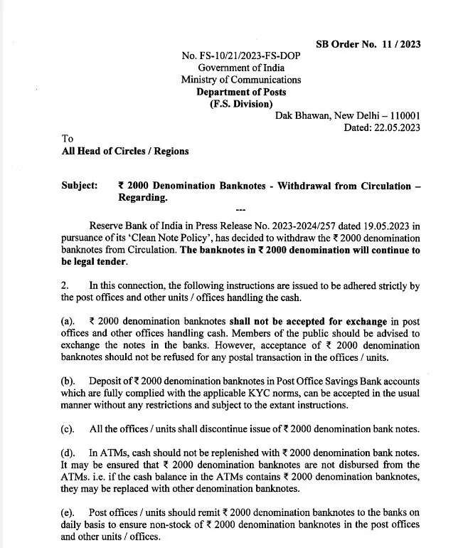 पोस्ट ऑफिस में जमा नहीं होंगे 2 हजार के नोट