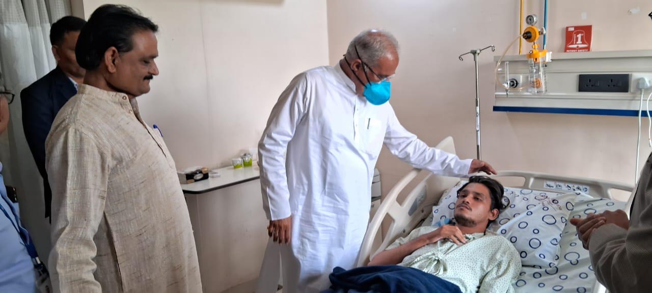 NH MMI हॉस्पिटल पहुंचे सीएम भूपेश बघेल, कांग्रेस नेता के घायल बेटे का हाल चाल जाना