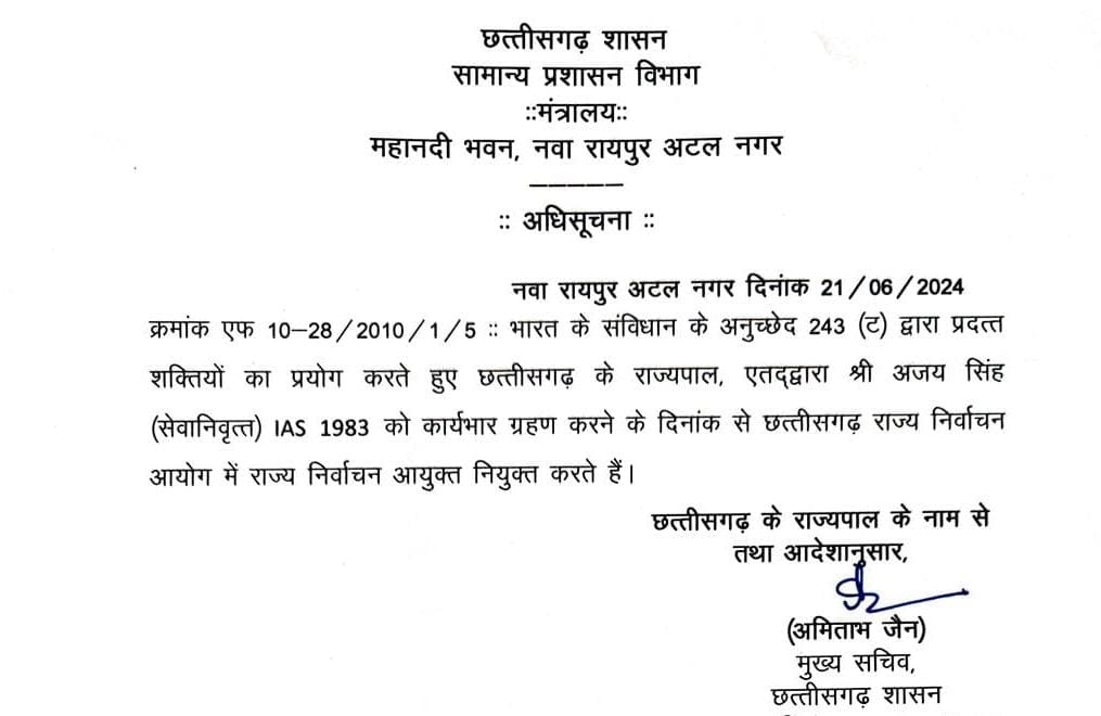 CG Posting Breaking : रिटायर्ड IAS अजय सिंह को मिली बड़ी जिम्मेदारी, बनाए गए राज्य निर्वाचन आयुक्त2 years ago