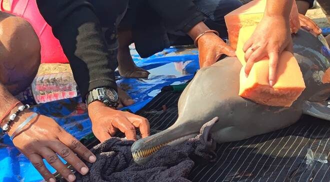 New Delhi: बुधवार को असम में पहली बार गंगा नदी डॉल्फिन (प्लैटनिस्टा गैंगेटिका) को टैग किया गया है। पर्यावरण, वन एवं जलवायु परिवर्तन मंत्रालय (एमओईएफसीसी) के तत्वावधान में आयोजित इस पहल को भारतीय वन्यजीव संस्थान (डब्ल्यूआईआई) द्वारा असम वन विभाग और अरण्यक के सहयोग से राष्ट्रीय सीएएमपीए प्राधिकरण के वित्त पोषण से लागू किया गया। यह न केवल भारत में बल्कि इस प्रजाति के लिए भी पहली टैगिंग है।