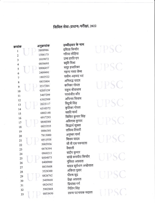 Share thisFacebookXEmailLinkedInWhatsApp DESK BB24 : यूपीएससी सिविल सेवा परीक्षा में इशिता किशोर ने किया टॉप, देखें लिस्ट