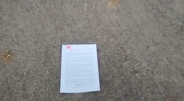 कांकेर – जिले के अन्तागढ़ विकासखण्ड में नक्सलियों ने खूड़गांव के पास भारी मात्रा में पर्चे फेककर पुलिस द्वारा की गई गिरफ्तारी का खंडन किया है. नक्सलियों द्वारा फेके पर्चे में कहा गया है कि कुछ दिन पहले हुए गिरफ्तारी को पुलिस नक्सल संघठन से जोड़ा जा रहा है. उस गिरफ्तारी से नक्सल के किसी संघठन से वास्ता नही है. आम ग्रामीण को पुलिस नक्सली बता कर गिरफ्तार की है. इसका नक्सली संघठन घटना करता है. रावघाट एरिया कमेटी के नाम से प्रेस रिलीज पर्चा सड़क में फेककर खंडन किया गया है. नक्सलियों ने पर्चे में यह भी आरोप लगाया है कि कैंप के आड़ में नक्सली स्थानीय लोगो को गिरफ्तार कर रही है.