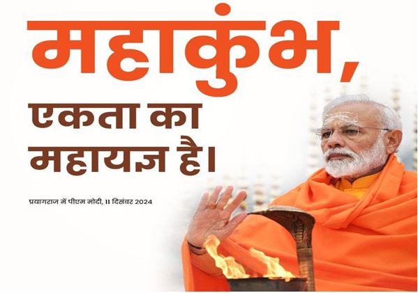 भारत को पवित्र स्थलों और तीर्थों की भूमि बताते हुए मोदी ने कहा कि यह गंगा, यमुना, सरस्वती, कावेरी, नर्मदा और कई अन्य असंख्य नदियों की भूमि है। प्रयाग को इन नदियों के संगम, संग्रह, समागम, संयोजन, प्रभाव और शक्ति के रूप में वर्णित करते हुए, कई तीर्थ स्थलों के महत्व और उनकी महानता के बारे में बताते हुए प्रधानमंत्री ने कहा कि प्रयाग सिर्फ तीन नदियों का संगम नहीं है, बल्कि उससे भी कहीं अधिक है। उन्होंने कहा कि प्रयाग के बारे में कहा जाता है कि यह एक पवित्र समय होता है जब सूर्य मकर राशि में प्रवेश करता है, तब सभी दिव्य शक्तियां, अमृत, ऋषि और संत प्रयाग में उतरते हैं। उन्होंने कहा कि प्रयाग एक ऐसा स्थान है जिसके बिना पुराण अधूरे रह जाएंगे। उन्होंने आगे कहा कि प्रयाग एक ऐसा स्थान है जिसकी स्तुति वेदों की ऋचाओं में की गई है।