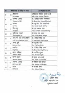 BBN24/ 27 अगस्त 2024: भारतीय जनता पार्टी (भाजपा) ने जम्मू-कश्मीर विधानसभा चुनावों के लिए अपने उम्मीदवारों की तीसरी सूची जारी की है, जिसमें 29 सीटों के लिए उम्मीदवारों के नामों की घोषणा की गई है। इस सूची में विभिन्न चरणों के लिए नामित उम्मीदवारों के नाम शामिल हैं। राज्य में चुनाव तीन चरणों में होंगे, जिनमें 18, 25 सितंबर और 1 अक्तूबर को मतदान होगा, और परिणाम 4 अक्तूबर को घोषित किए जाएंगे।